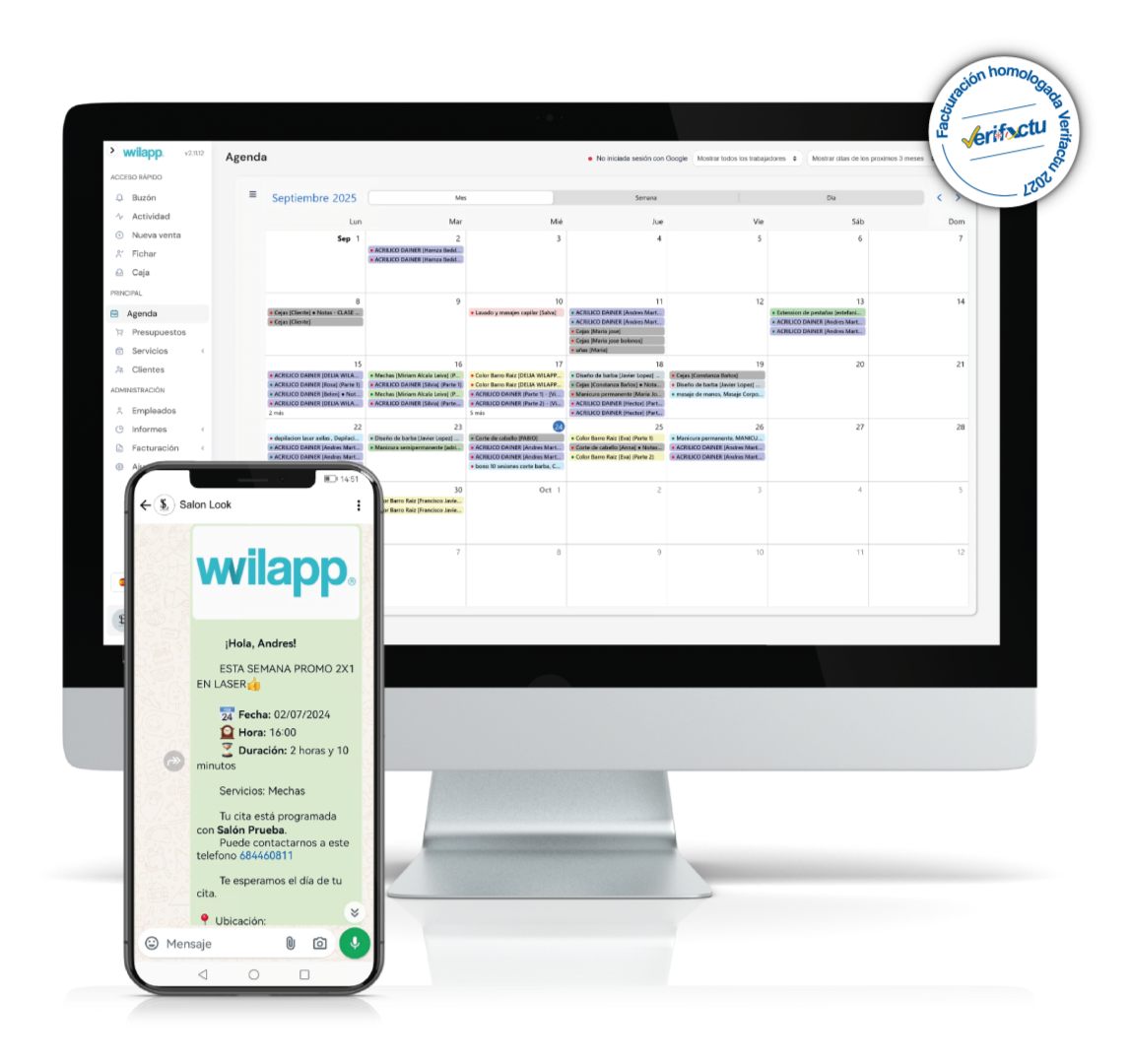 Forget about spreadsheets, lost messages and last minute forgetfulness. With Wilapp you have everything centralized: digital agenda, automatic invoicing and customer database always updated.
